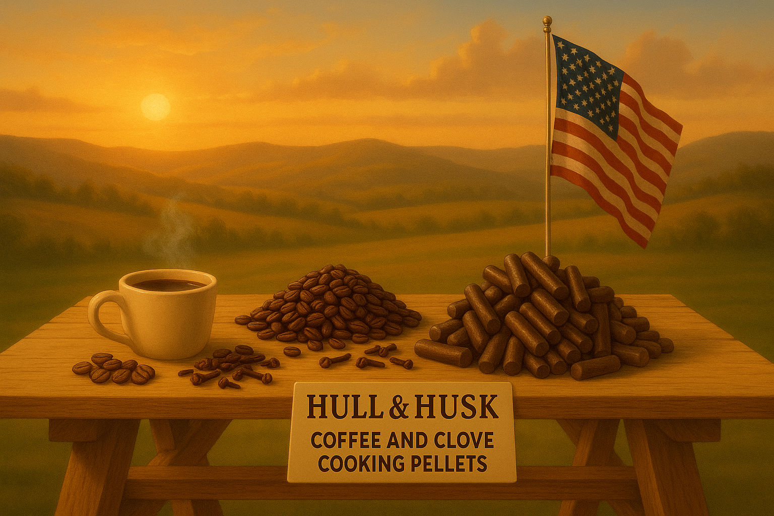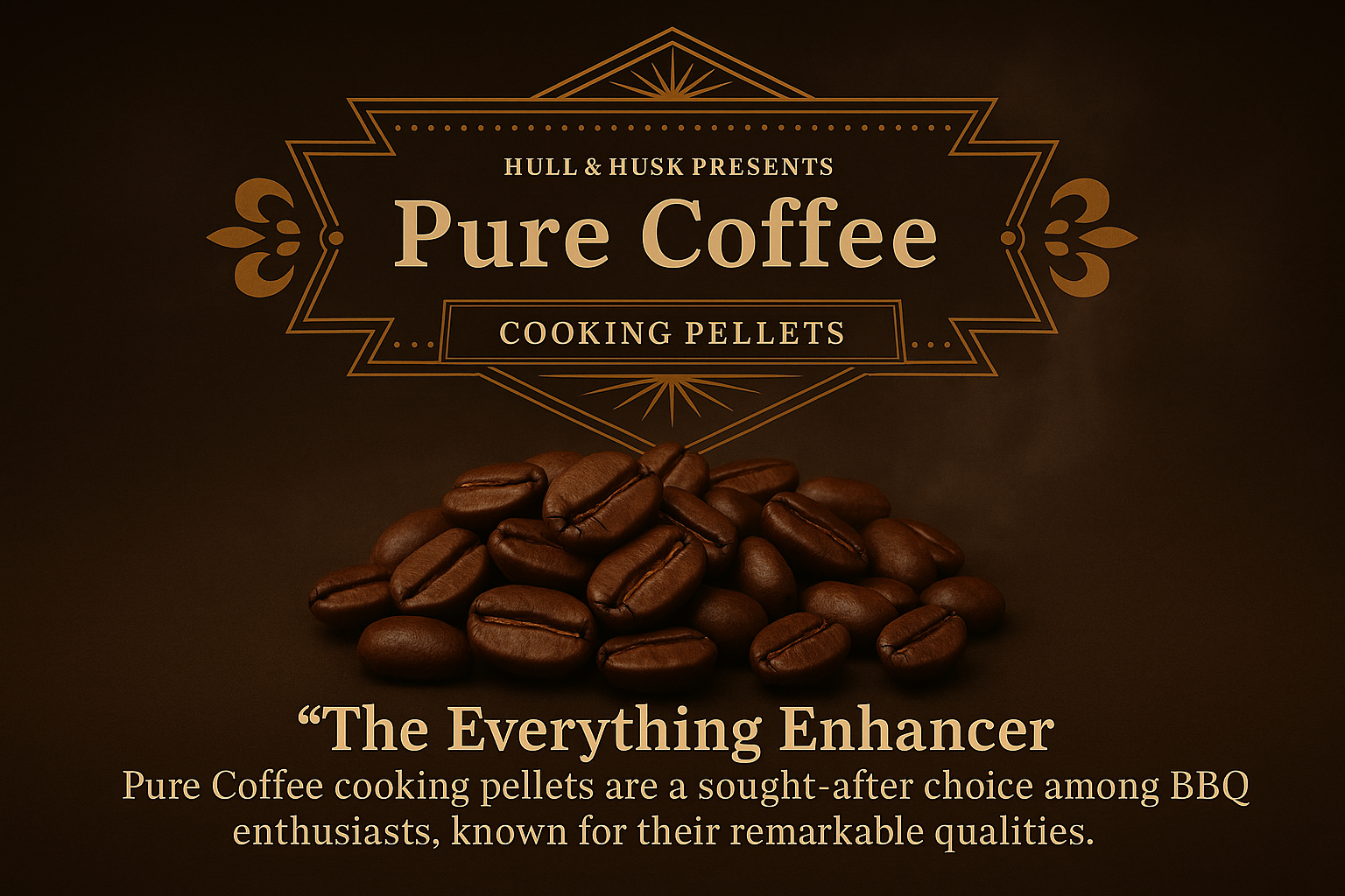 Premium cooking pellets where coffee grounds are the hero ingredient, blended with complementary biomass for optimal grill performance.